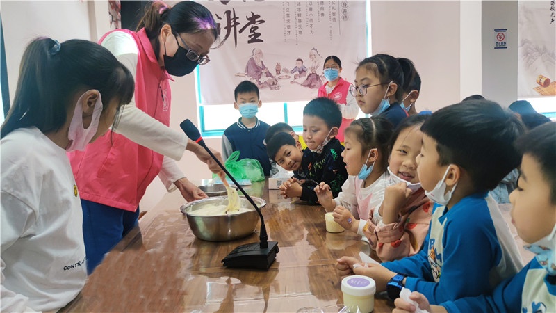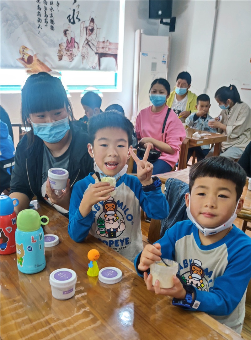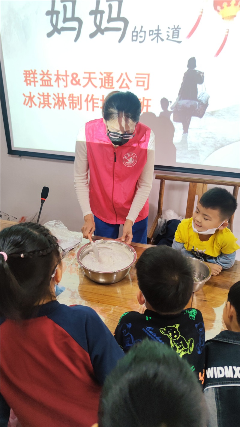 提及冰淇淋,現(xiàn)場(chǎng)的小朋友一個(gè)個(gè)興奮得歡呼雀躍。商場(chǎng)里出售的冰淇淋中多含有較多的添加劑,如何給孩子制作一款無添加劑的冰淇淋成了這堂親子互動(dòng)課的目的。群益村美食老師現(xiàn)場(chǎng)講解打發(fā)雞蛋及雞蛋牛奶混合液的過程,演示打發(fā)淡奶油、攪拌混合,加入果醬等改變口味的方法和分裝小瓶等步驟。期間大家認(rèn)真聽講解,小朋友們眼睛牢牢地盯著講臺(tái),仔細(xì)觀察每一個(gè)步驟,還時(shí)不時(shí)地向美食老師發(fā)問,興致高漲。孩子們一邊品嘗著冰淇淋,一邊在自己的冰淇淋罐盒上貼上自己所愛口味的標(biāo)簽后讓美食老師裝滿剛做的冰淇淋,跑前跑后忙得不亦樂乎!